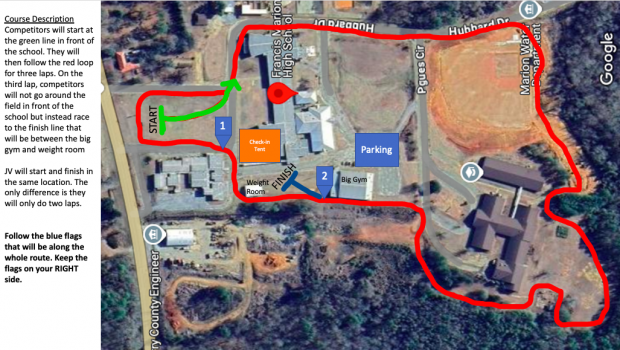 The course will be on a one mile loop that includes some pavement and concrete, so spikes are not recommended. The 5K runners will do three laps and the JV runners will do two laps.